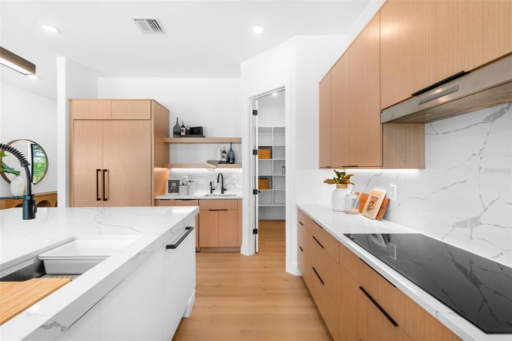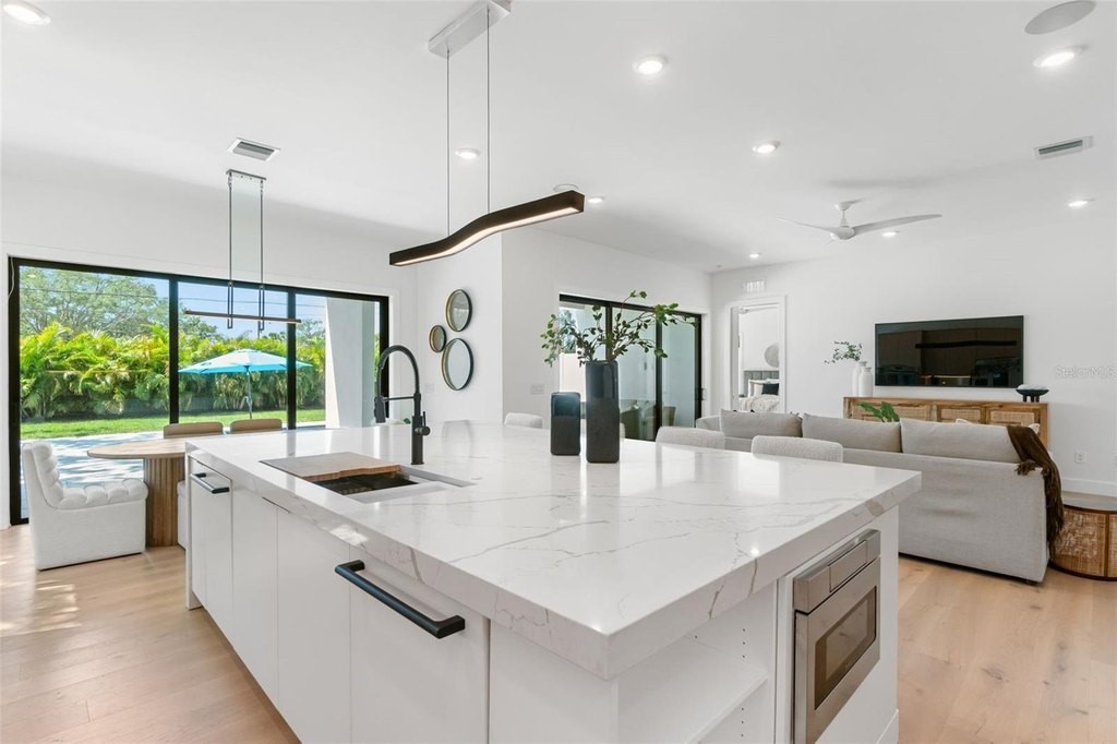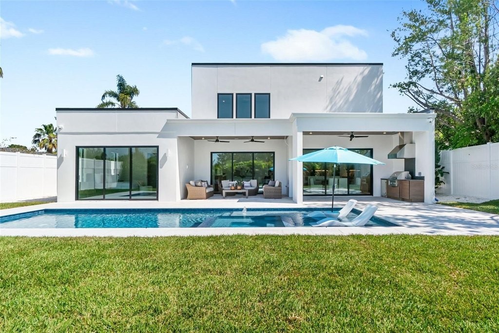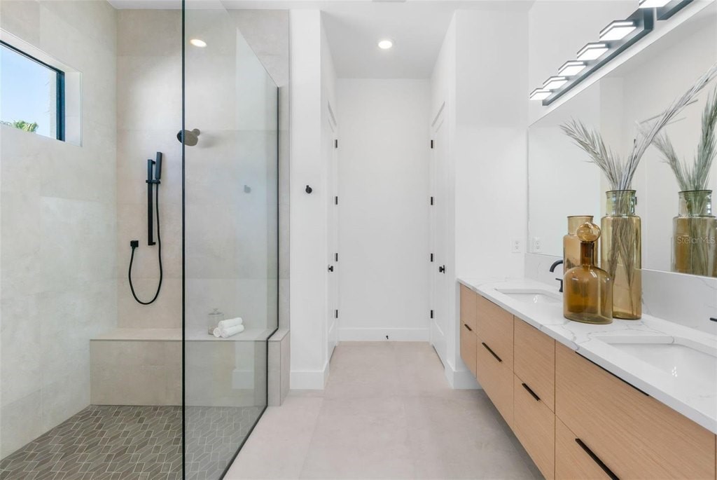 Modern refinement blends seamlessly with elegance and comfort in this stunning, new construction masterpiece from TDI Coastal Homes. An ideal location, this home is situated 10 minutes from the world famous Crescent beach on Siesta Key and just minutes to downtown Sarasota. Peace of mind is assured as this property is not in a flood zone and is perched a safe 21 feet above sea level. With a front facade that boasts clean lines and a captivating mix of wood, stone and a unique commercial style glass garage door, your curb appeal will be undeniable as you welcome family and friends into your sophisticated sanctuary. Cutting edge material and design does not sacrifice quality and durability as the engineered hardwood floors throughout the first floor create the perfect foundation for the exquisite open concept design. A chef’s kitchen, featuring Thermador appliances, quartz countertops, an oversized island, intriguing fixtures and a walk-in pantry, lies at the heart of the home and is undoubtedly where your guests will gather to enjoy your inspired culinary creations. Find respite in your primary suite that will envelope you in luxury as you rest and recharge from your days filled with Suncoast adventures. The first floor also offers a home office, mud room, laundry space and multiple sets of sliders to the outdoor oasis consisting of a spacious lanai with a fully appointed outdoor kitchen and multiple seating areas. The refreshing pool will keep you comfortable on sunny afternoons while the warm spa will soothe as the day fades into night. The second floor grants room for guests or additional personal space with three generous bedrooms; one bedroom with a private bath and two that share an adjoining bath. Additional features to include a mosquito misting system for added comfort, a two car garage, and a reverse osmosis system for clean, filtered ice and water. With an incredible location in a vibrant community and top notch schools just around the corner, this home offers the best of Sarasota, brimming with culture, recreation, convenience and the quintessential Florida lifestyle. TDI Coastal Homes creates homes to meet your lifestyle through innovative design and meticulous attention to creating a space that feels extravagant yet effortless.